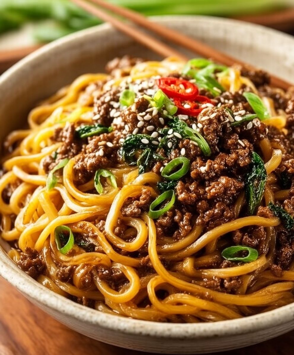 Mongolian Ground Beef Noodles Recipe